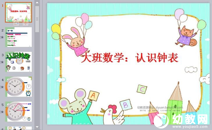 • 大班數(shù)學(xué)ppt課件:認(rèn)識鐘表
