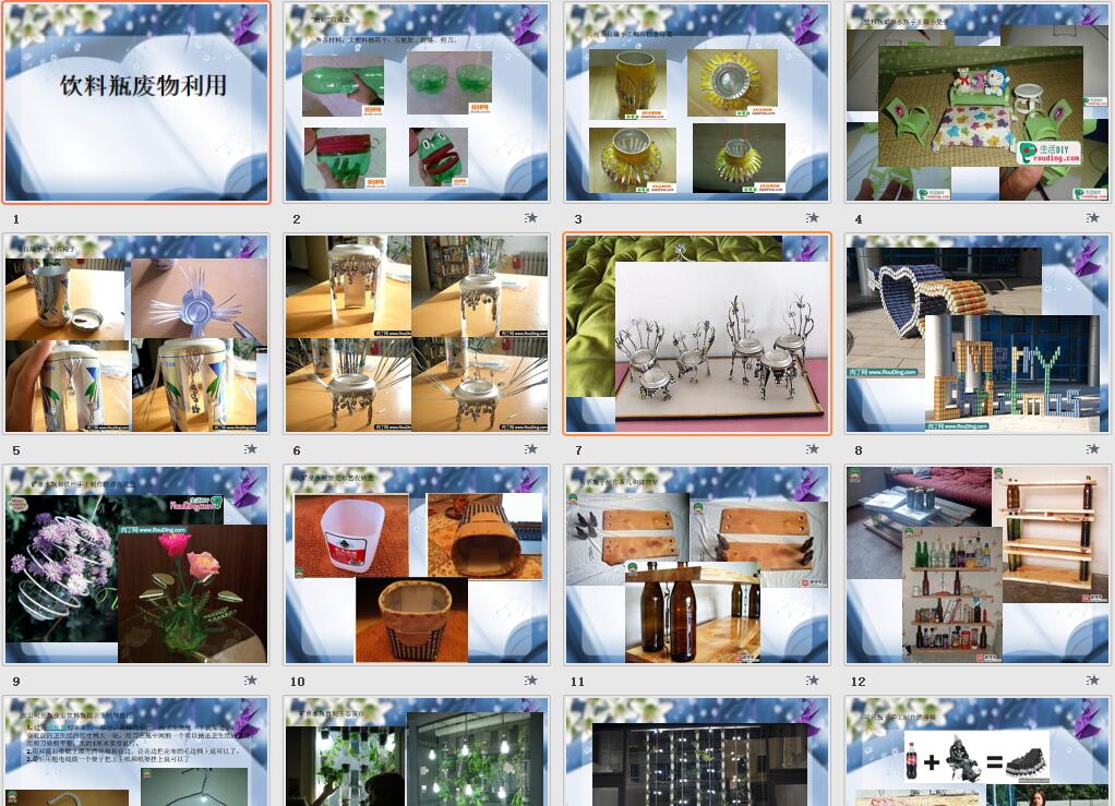 【生活廢物利用手工制作飲料瓶廢物利用PPT課件】相關文章: