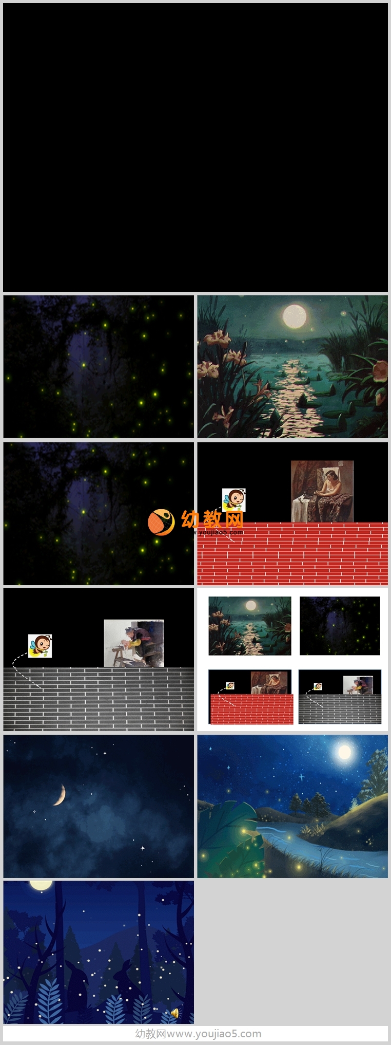 2.感知螢火蟲飛到不同場景的意境,通過傾聽、圖片觀察和情境感受,體驗詩歌的意境美。